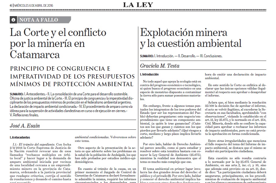 Resumen. En este artículo comentado en la Revista La Ley comentamos un fallo de la Corte argentina en que se resuelve que la sentencia local… Leer más »Comentario a la sentencia de la Corte «Martínez» por minería y complementariedad